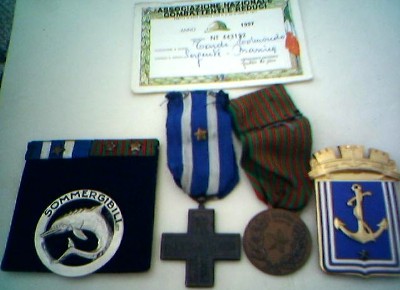 Mio nonno nacque nel 1917 e all'eta' di 19 anni nel 1937 ha iniziato a svolgere il servizio di leva che ai tempi durava 18 mesi...assegnato in marina come sommergibilista,ebbe la chiamata alle armi nel dicembre del '38. Con la classifica di allievo fuochista saldatore autogenista,venne imbarcato sul R.S.M. Smeraldo su cui rimase dal '38 al '40 partecipo' a numerose missioni con stazionamento al "Comando Marina di Tobruk" dopodiche' fu trasferito e imbarcato sul somm. Anfitrite.Da quersto momento inizia l'avventura infatti nel gennaio del '41 nessuno sapeva che quel somm. non sarebbe mai arrivato alla primavera!Pensate l'ultima missione assegnata all'equipaggio dell'Anfitrite era un servizio di pattugliamento a est dell'isola di Creta dopo segnalazione di possibile presenza e passaggio di un convoglio misto di grandi dimensioni formato da numerose navi mercantili inglesi scortate da diversi destroyer.Raggiumta la zona prestabilita l'obbiettivo fu individuato e con una lenta manovra di avvicinamento portatisi a quota periscopio notarono la lunga fila di navi di navi battenti bandiera inglese.I mercantili erano tutti in fila, lateralmete vi erano sei destroyer! Da quel momento inizia la lunga attesa per cogliere l'attimo giusto.Calate le tenebre con un silenzio irreale il sommergibile sputo' fuori da una delle 6 bocche infernali il suo primo siluro e inizio' l'inferno di in un attimo 3 dei 6 destroyer diventarono,avvolti dalle fiamme,palle di fuoco!! ma l'entusiamo duro poco quelli rimasti non si lasciarono sorprendere e iniziarono la lunga caccia al nemico.L'Anfitrite si porto' con immersione rapida ad una notevole profondità ma questo non bastò a salvarlo,iniziò infatti una lunga serie di attacchi con bombe di profondita' inizialmente lontane ma via via sempre più vicine fino a che alcune di queste colpirono in pieno il battello.Nell'impatto morirono diversi marinai.Il somm.aveva subito danni irreversibili e i militari sopravissuti tra cui mio nonno furono costretti ad abbandonare il battello,mediante la "CAMPANA" una alla volta tentarono di portarsi in superficie ma ad attenderli furono i colpi di mitra sparati dai militari inglesi.Anche mio nonno fu colpito ad una gamba fortunatamente in maniera non grave,nonostante cio' rimase in acqua fino all'alba del giorno dopo per poi essere recuperato con altri 6 sopravissuti.Fatto prigioniero dagli inglesi fu deportato in africa dove fini' la guerra in un campo di prigionia dal 6-3-41 al 1-4-46